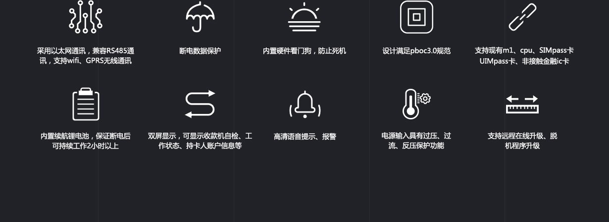 - 具有两个SAM卡接口,可方便升级到符合银行要求的终端